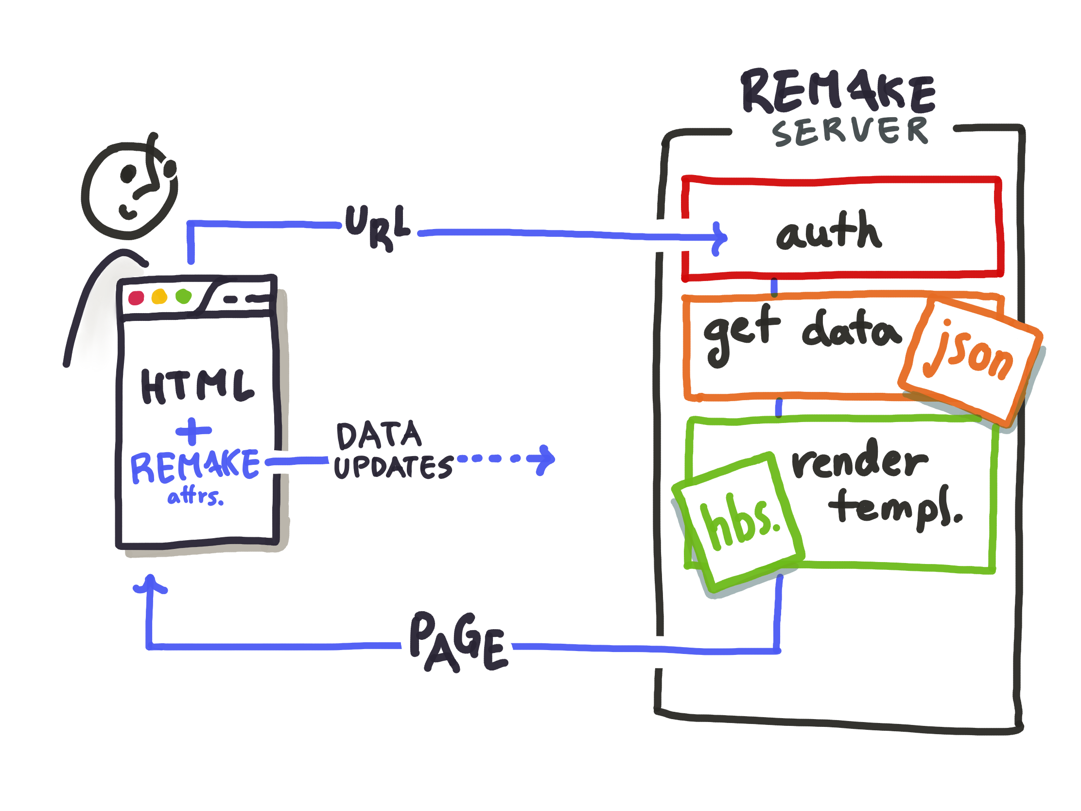 - Renders the page template with data from the user’s data file, and sends it to the browser, along with small CSS and JavaScript bundles for Remake’s UI.