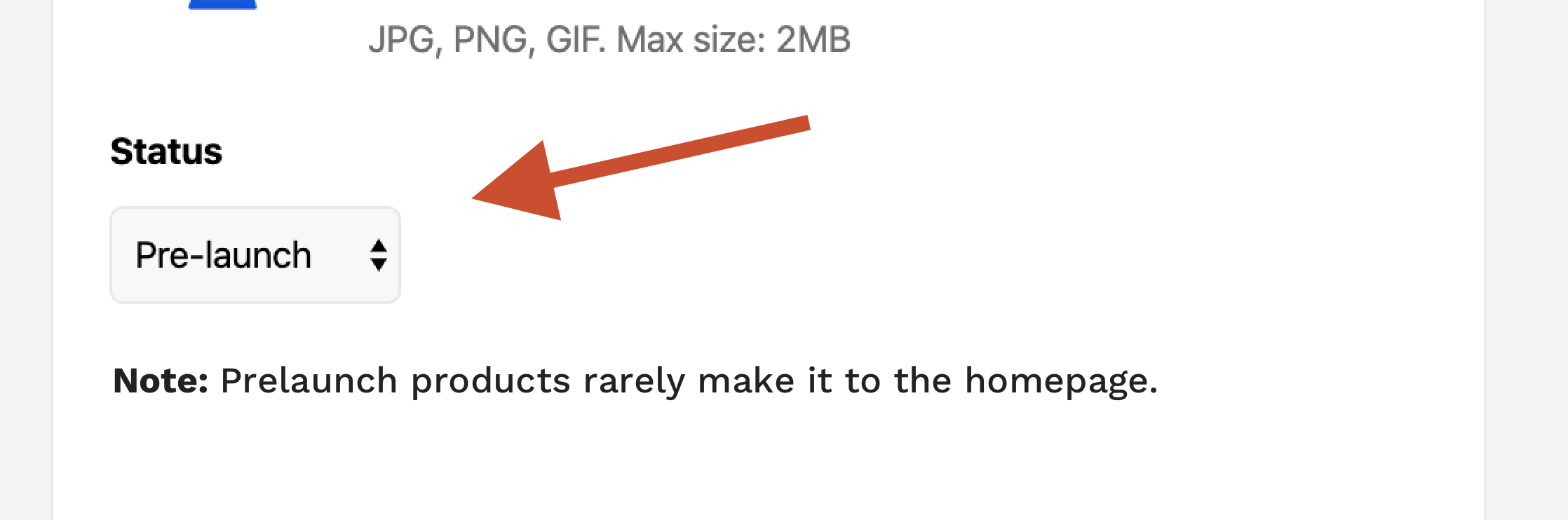 I assumed, in my moment of (slight) panic, that these options referred to the status of my product post, not the status of my startup.